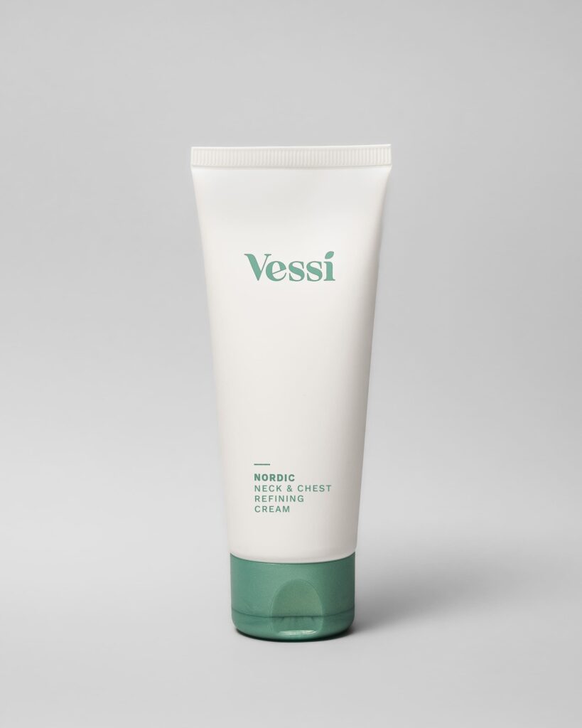 Vessi Neck & Chest Refining Cream is a moisturizing and firming cream specially formulated for the skin of the neck and décolleté. It contains a combination of oat seed oil, betaine and hyaluronic acid that soothes and hydrates the skin. Niacinamide and blueberry seed oil help even out the complexion and reduce visible signs of aging. It also contains salicylic acid, which gently exfoliates the skin.