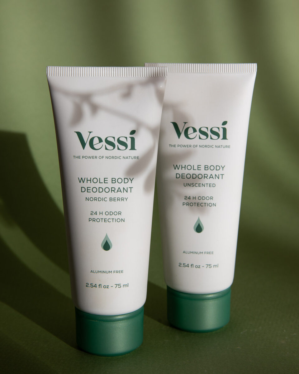 The Vessi body deodorant is perfect for under the arms, but is completely safe to use on the whole body. The soft cream consistency in tube form makes it easy to apply – whether you want to use your fingers or apply directly from the tube. You can’t go wrong.