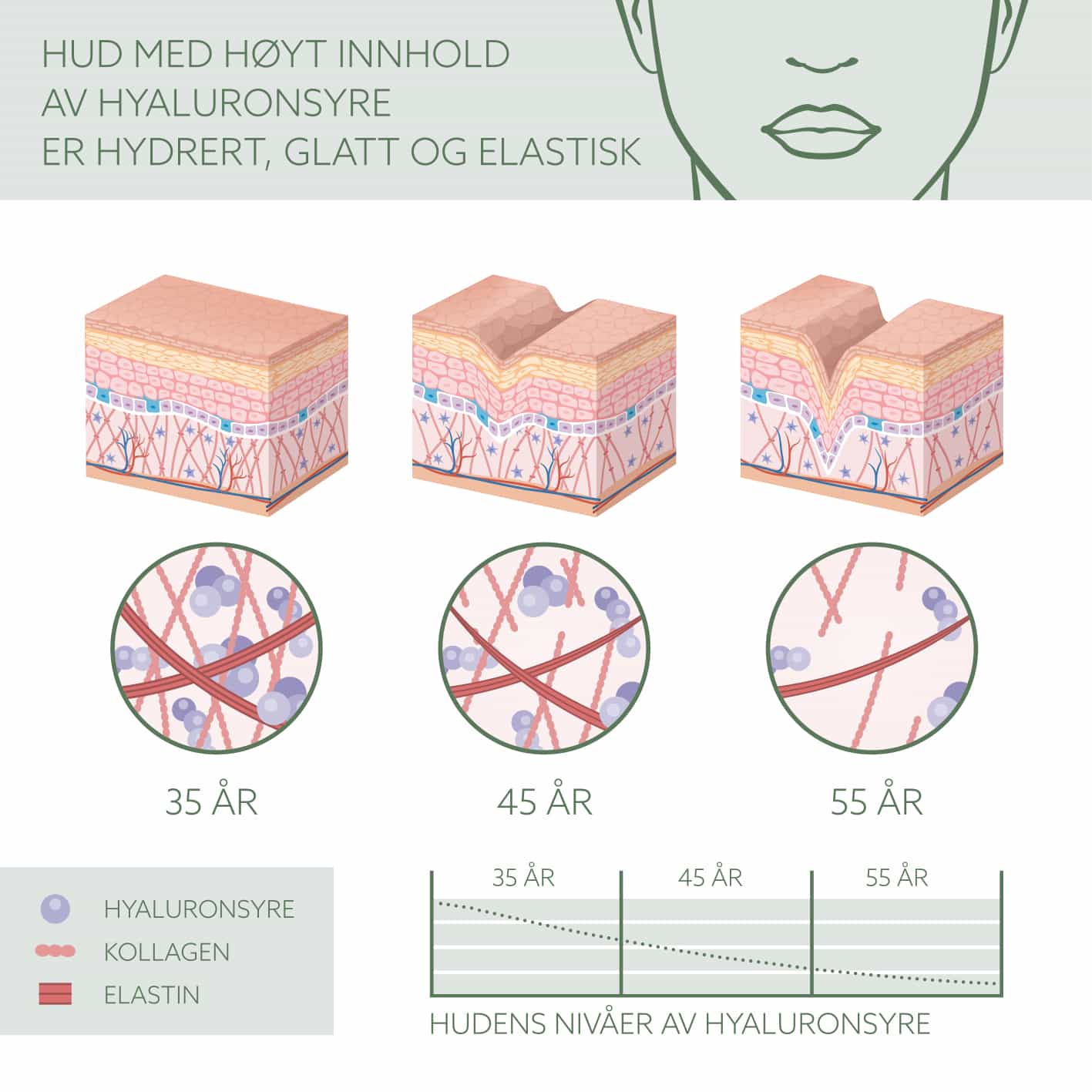 Når vi bliver ældre, har vores hud andre behov. De hudplejeprodukter, vi altid har brugt, har ikke længere den samme effekt. Huden bliver mere tør, da produktionen af hyaluronsyre falder – hvilket er forbundet med aldringstegn som slap hud og rynker1. Huden er også længere tid om at danne nye celler, hvilket gør det lettere for mørke pletter og urenheder at dukke op.