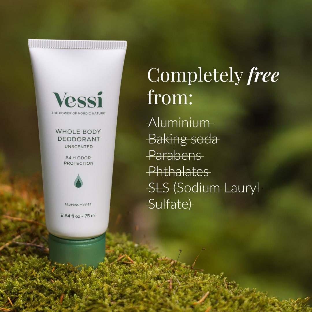 El desodorante corporal completo de Vessi también puede usarse debajo de los pechos, en pliegues abdominales, detrás de las orejas o en cualquier parte donde aparezca mal olor corporal no deseado.