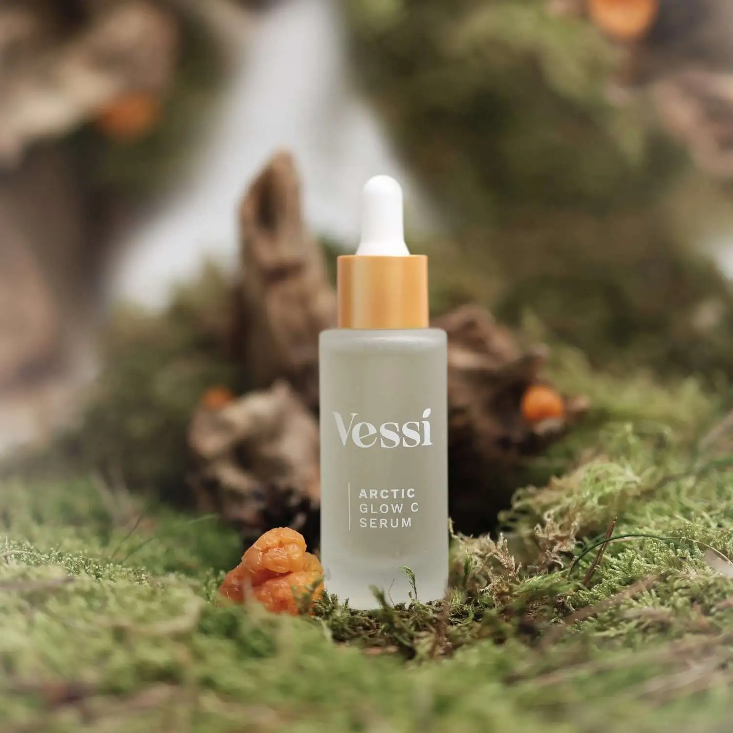 Nordic Arctic Glow C Serum stands out from other vitamin C serums due to its unique combination of both natural and active ingredients. The high concentration of vitamin C ensures that the ingredients maintain their effectiveness and penetrate deeply into the skin, while the naturally vitamin C-rich extracts from cloudberries and sea buckthorn berries have a regenerating effect on the skin’s renewal process. The content of provitamin B5 makes the serum just as suitable for sensitive skin as for other skin types.