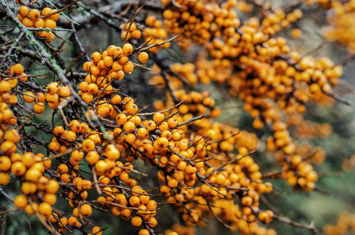 The orange berries from the sea buckthorn shrub contain more than ten times as much vitamin C as oranges and have a unique composition of fatty acids. Over half consists of the rare omega-7, along with other omega fatty acids that have moisturizing and softening properties. Sea buckthorn berries also contain vitamin E and other antioxidants that protect the skin.
