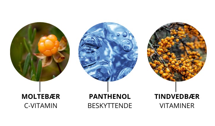 Nordic Arctic Glow C Serum also contains natural extracts from cloudberries and sea buckthorn berries that enhance the effect, as well as Provitamin B5, which adds moisture and soothes. This helps make the skin more resistant to external influences and keeps it soft and supple.