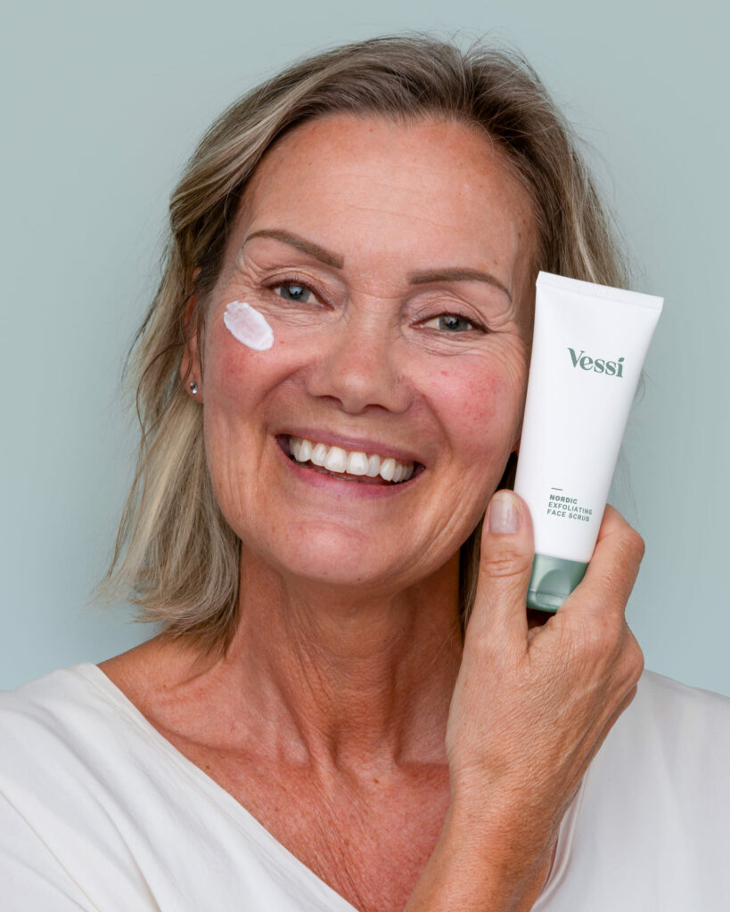 Vessi Nordic Exfoliating Face Scrub is a gentle facial scrub that removes dead skin cells without drying out your skin. The fine exfoliating particles, combined with hydrating ingredients, leave your skin smoother, softer, and refreshed.