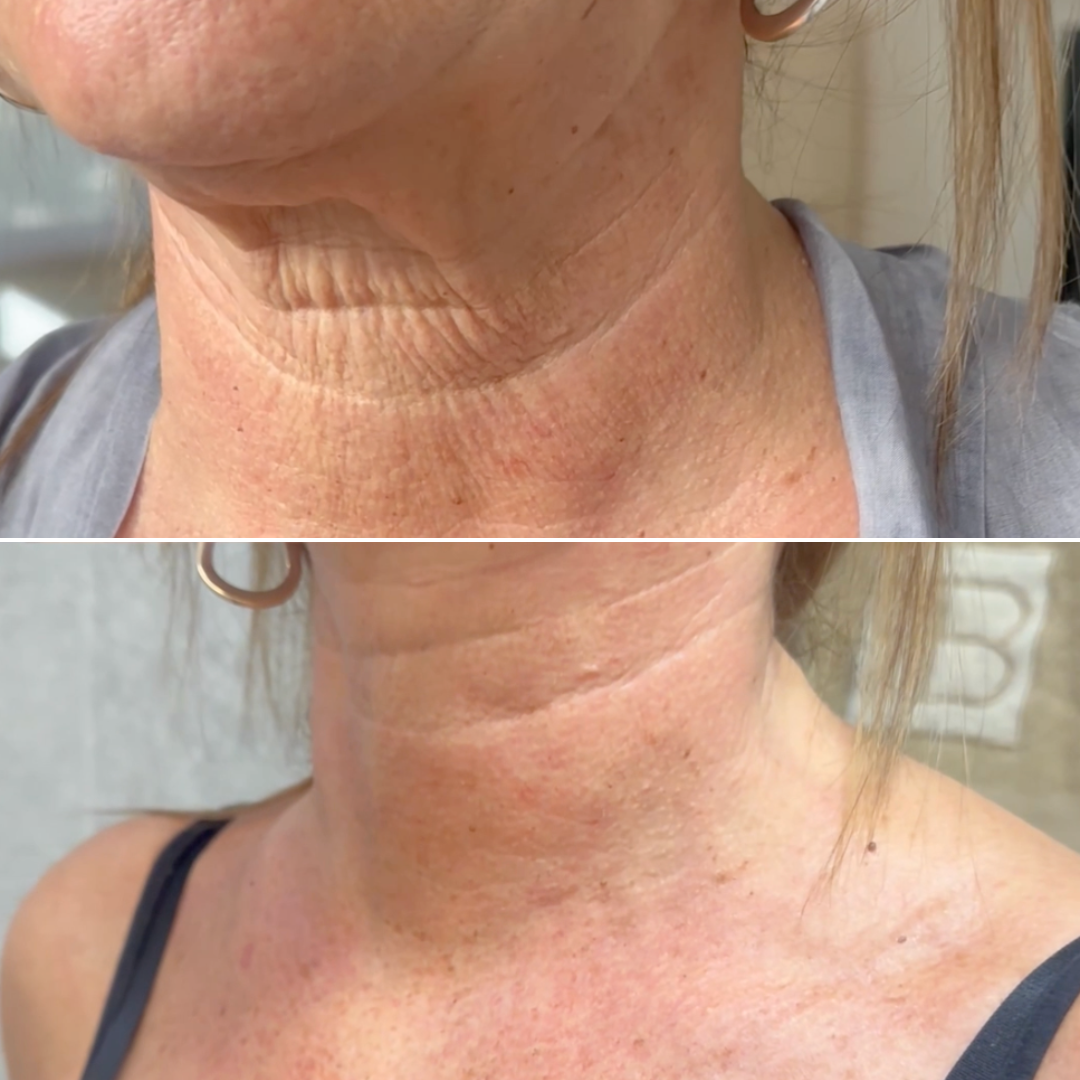 Pielea din zona gâtului este mai fină și mai uscată decât cea de pe restul corpului. Pentru că este supusă constant mișcărilor repetate (de fiecare dată când întoarcem capul), pielea gâtului tinde să formeze mai repede linii orizontale și riduri. Pielea de pe decolteu, în schimb, este influențată de greutatea bustului și tinde să formeze riduri în direcția opusă. Crema are o formulă specială pentru aceste zone și oferă mai multă îngrijire în comparație cu o cremă obișnuită pentru față.
