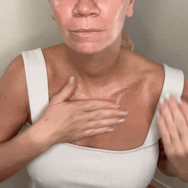 Curățare – Aplică pe pielea curată și uscată a gâtului și a decolteului pentru a pregăti pielea și a asigura o absorbție optimă a cremei.